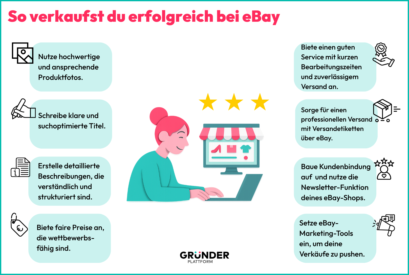 Deinen eBay-Shop zum Leben zu erwecken ist das eine. Nun musst du dein neues Business geschickt aufbauen, damit die Umsätze fließen. Hier kommen die wichtigsten Tipps für dich, um bei eBay erfolgreich zu verkaufen: